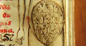 This scene includes a few more shots of open manuscripts, mostly the same as the ones seen in the scriptorium scene.